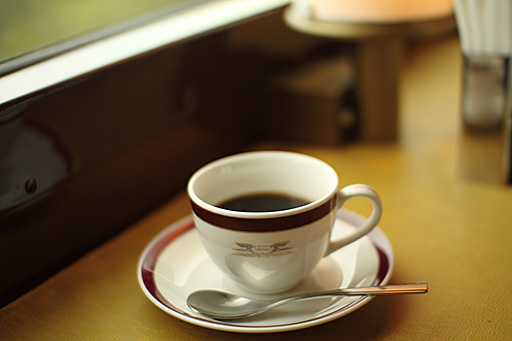 A寝台個室利用者には食堂車からモーニングコーヒーまたは紅茶がサービスされます。このときだけ、エンブレムの付いていないカップが使用されました。北海道の景色を眺めながらのコーヒータイムです。
